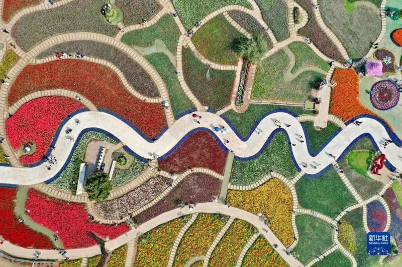 3月10日,游客在成都市新都区漫花庄园赏花(无人机照片)。