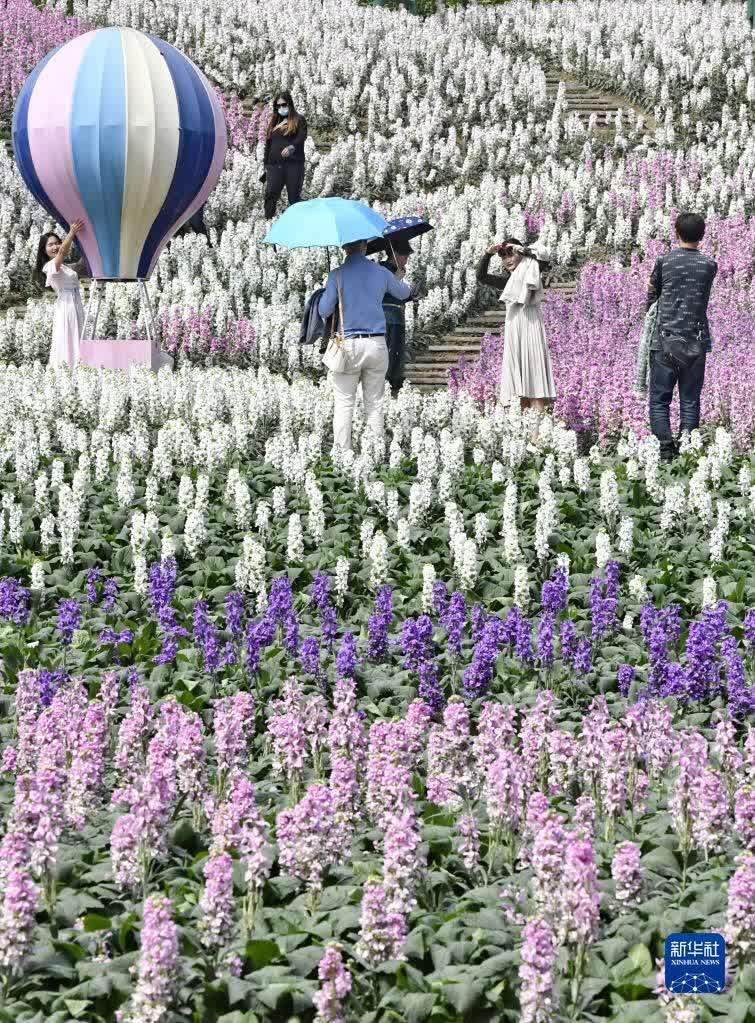 3月10日,游客在成都市新都区漫花庄园赏花。