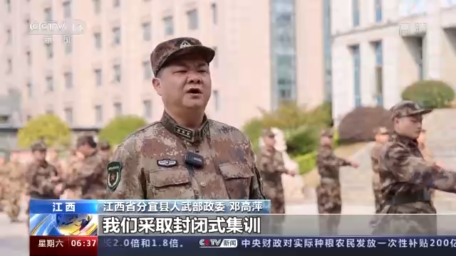 江西省分宜县人武部政委 邓高萍:我们采取封闭式集训、连队化管理、全过程考核,让预定新兵坚定入伍信心、提高适应能力,缩短适应周期。