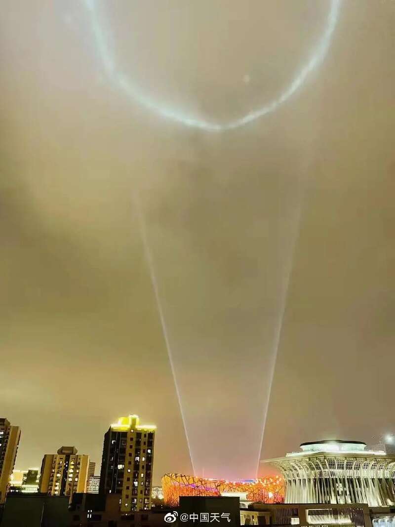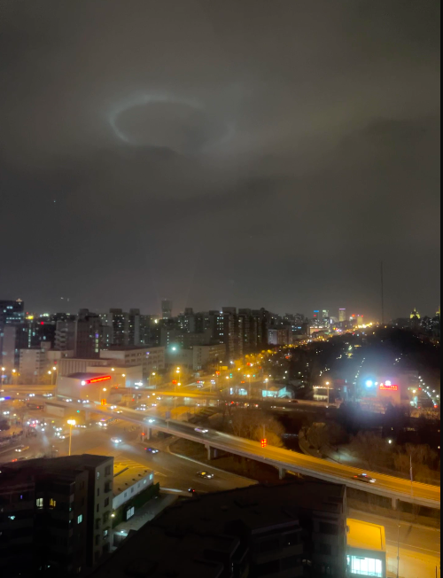3月11日晚,多位北京网友拍摄到北京天空出现一个明亮光圈的照片。