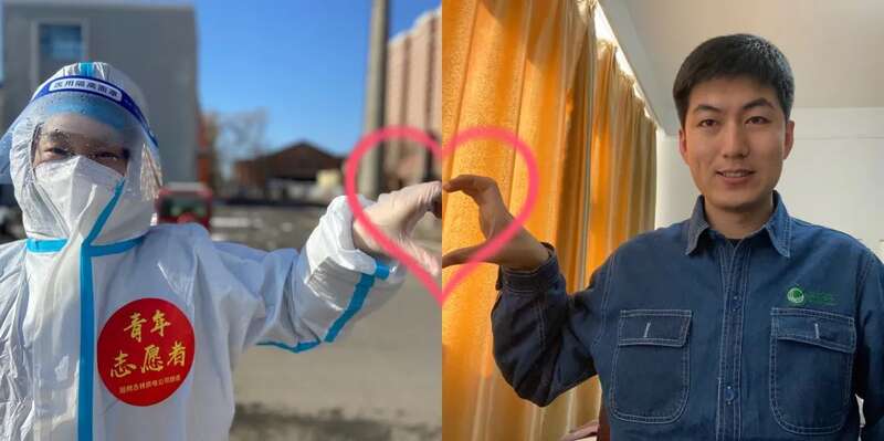 午休时,核酸采集点的志愿者徐小晴摘下手套,打开手机,她看到微信传来的一张特殊照片。早上工作前,她自拍了一张单手比心的照片发给男友,对方则将两个人隔空比心的照片合在了一起。“这算是一张特殊的婚纱照。”徐晓晴说,疫情改变了他们原本拍婚纱照的计划,男友正在隔离观察,她则第一时间报名成为一名疫情防控志愿者。