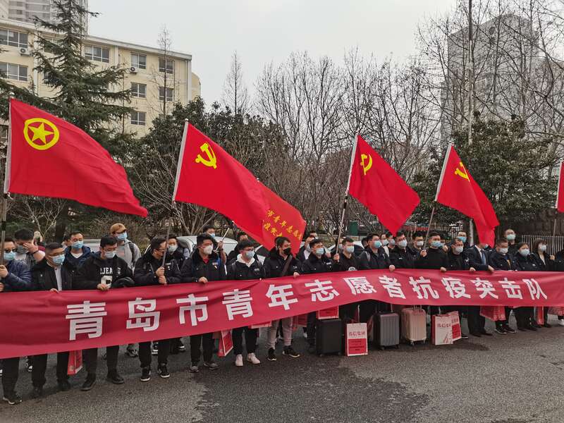 其中团莱西市委已组织近百支青年突击队、3000余名青年志愿者,西海岸新区团委组建58支青年突击队、共2388名青年志愿者,带头奋战抗疫一线,参与核酸采样点秩序维护、健康码查验、场地消杀、体温测量、信息录入、防疫知识宣传、分发防疫物资等工作。其余各区市团委组织的抗击疫情青年志愿者(突击队)奋战在各区市排查登记、社区防控等防疫一线。