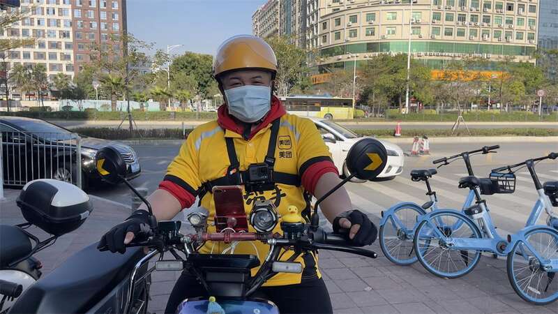 通过联系相关单位寻访,记者找到了这名快递小哥——他叫田猛,现在是深圳市宝安区固戍片区的一名美团外卖骑手。