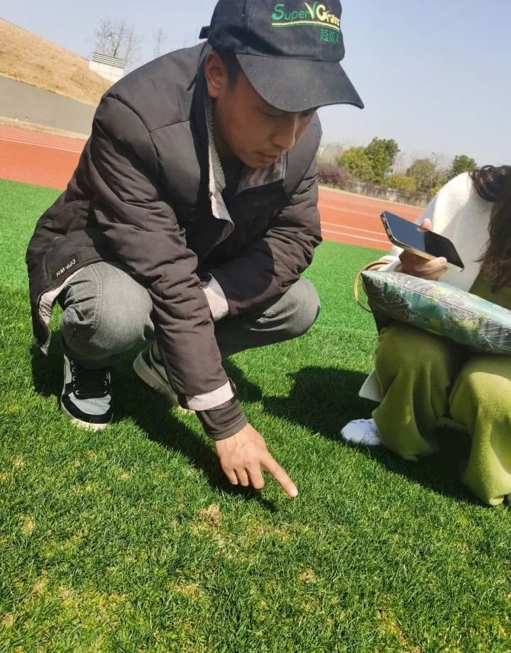 说了“七分养”,再来看看“三分种”。养护单位相关负责人郑小卫介绍说,想要草长得好,前期必须有一个好基础,这其中最主要的是场地的排水。