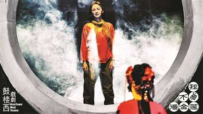 《我不是潘金莲》的舞台上有装置、有透视,而“日出”这段甚至还有冰屏与水墨的叠加,张歆艺说,“我知道很多观众此刻内心都会说,李雪莲你要hold住这份情感,别再告了。但后面一个巨大的落差,她又掉下去了,这就是戏剧不可替代的强大能量。”