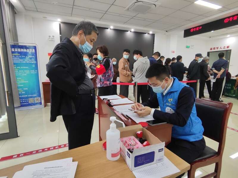 在稻香村街道社区卫生服务中心,来自合肥学院的志愿者彭宇杰和同学已连续站了5个多小时,帮助社区维护排队秩序,引导居民提前出示安康码。人流稍缓后,他们又跟随社区赶往下一个地点帮忙。“今天正好没课,在群里看到招募令就来了,我身强体壮,一点不累,就是一直说话,有点渴。”他说。