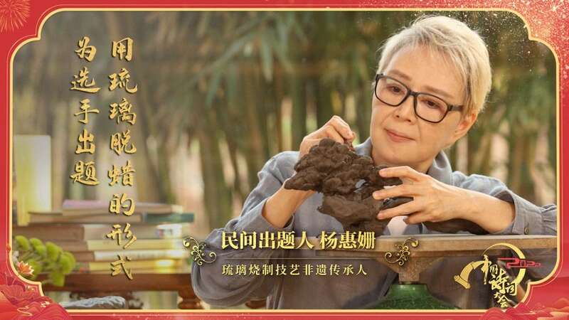 在今年最后一期节目中,上海琉璃艺术博物馆创始人杨惠姗担任了“画中有诗”的民间出题人。她用琉璃脱蜡铸造的形式创作了一件精美的琉璃作品,表现宋代曾几的诗句“幽人所住空山里,老松皆作虬龙起”。这道题最后难住了所有人。