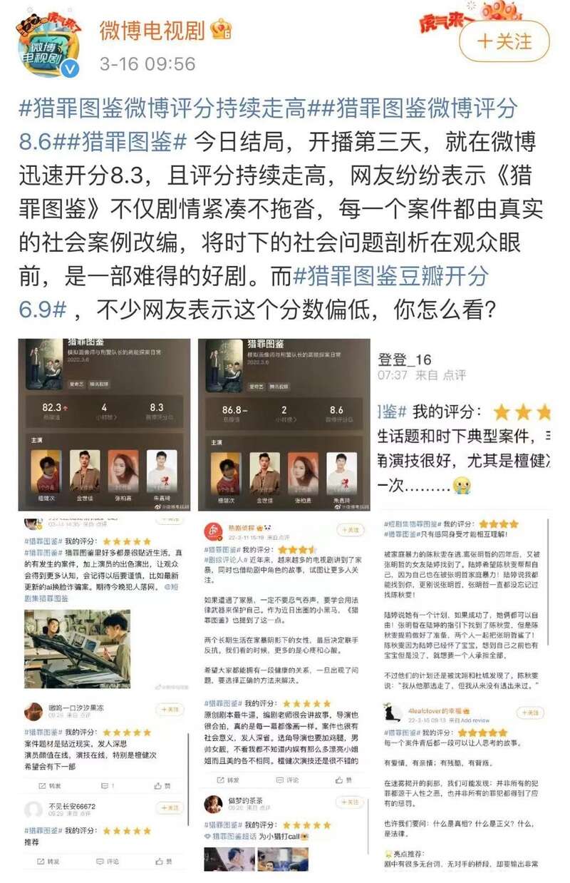 “微博电视剧”借网友之口,认为这个分数偏低。开播第三天,这部剧就在微博开分8.3,再一路走高到8.6。