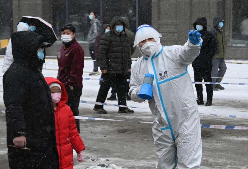 3月15日,长春市前进大街核酸检测点的工作人员向市民解释相关要求。新华社发(徐家军摄)