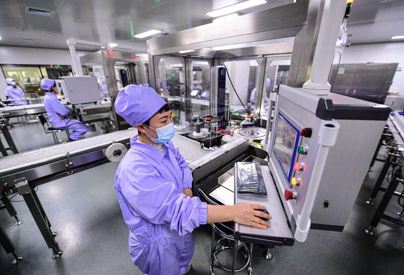 东北制药的一个智能化生产车间里,生产线各项生产工艺数据实现了自动控制,生产稳定且公开透明可追溯。(东北制药供图)