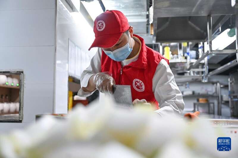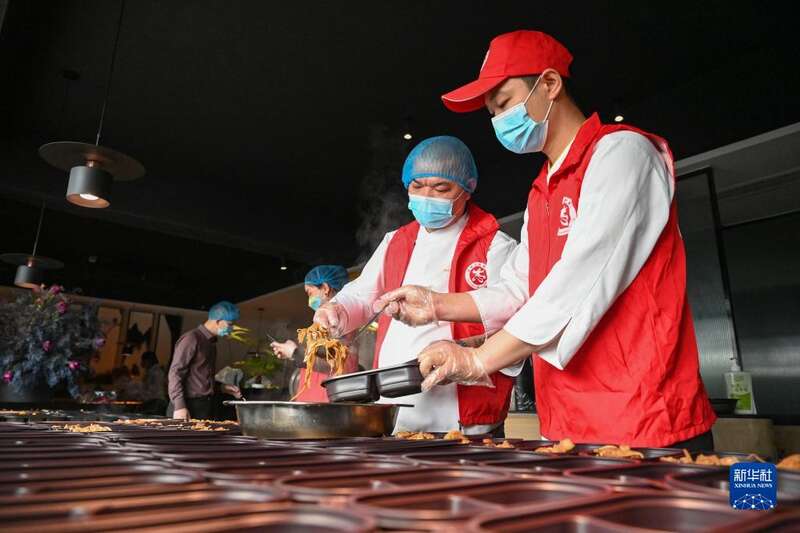 3月18日,志愿者在泉州市一家餐饮店内制作爱心午餐。