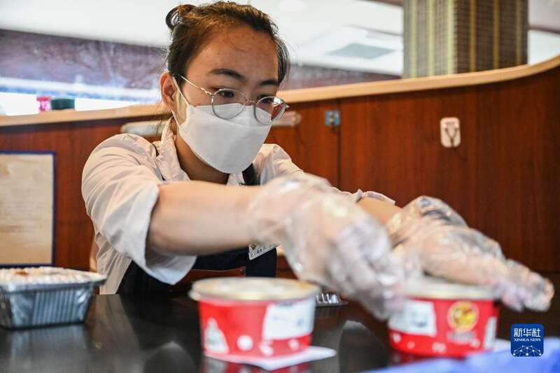 3月18日,在泉州市一家快餐店内,店员在打包爱心午餐。