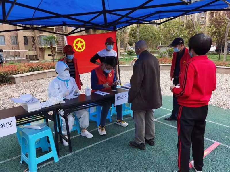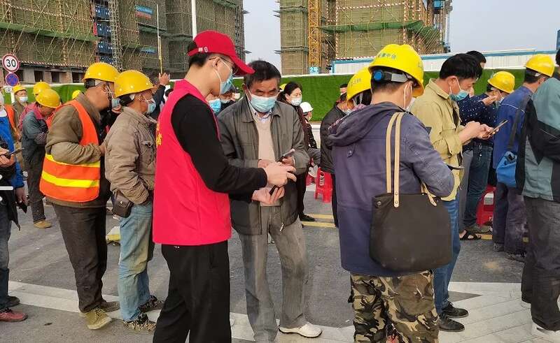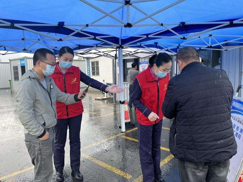 与此同时,在合肥市项目工地,中建五局二公司团委邀请医护人员为项目工友和管理人员进行核酸检测,组织青年志愿者协助做好秩序维护。