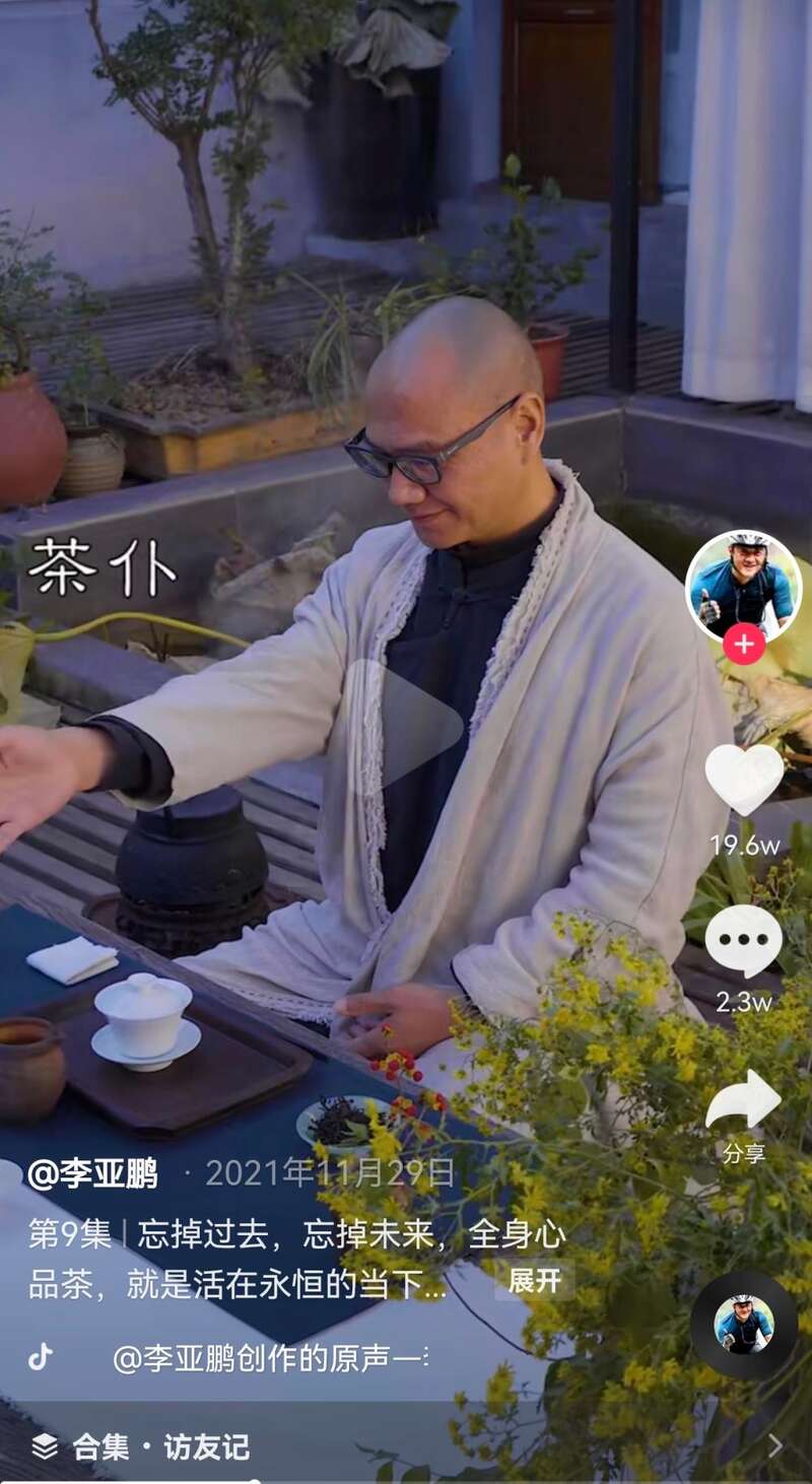在登上热搜的这段短视频中,李亚鹏介绍,自己去拜访一位名叫“茶仆”的友人,并遵照主人的意愿,在喝茶期间“止语”,也就是只喝茶,不讲话。