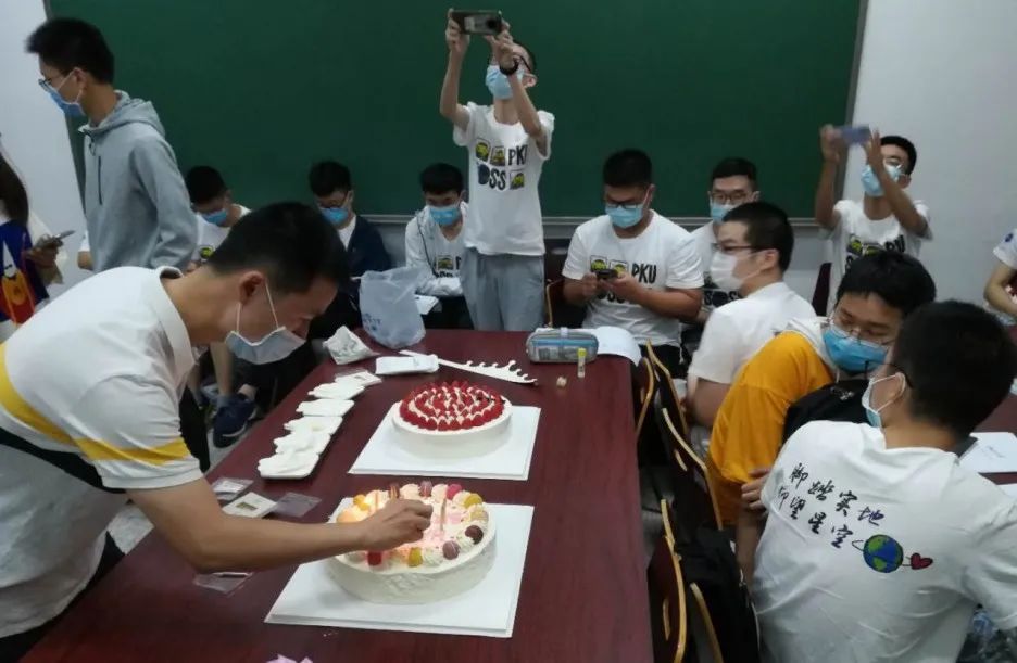 第一次班会有同学过生日,大家准备了蛋糕,唐铭正在点蜡烛