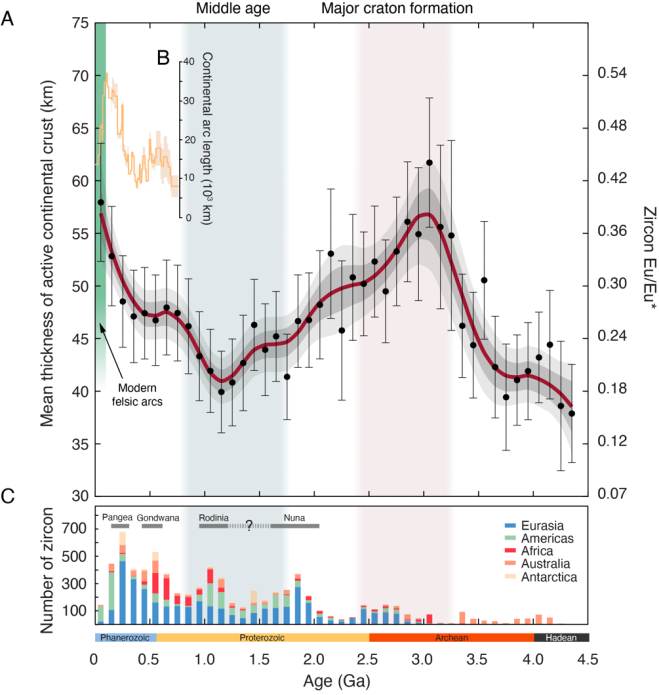 基于全球碎屑锆石重建的地壳厚度演化历史