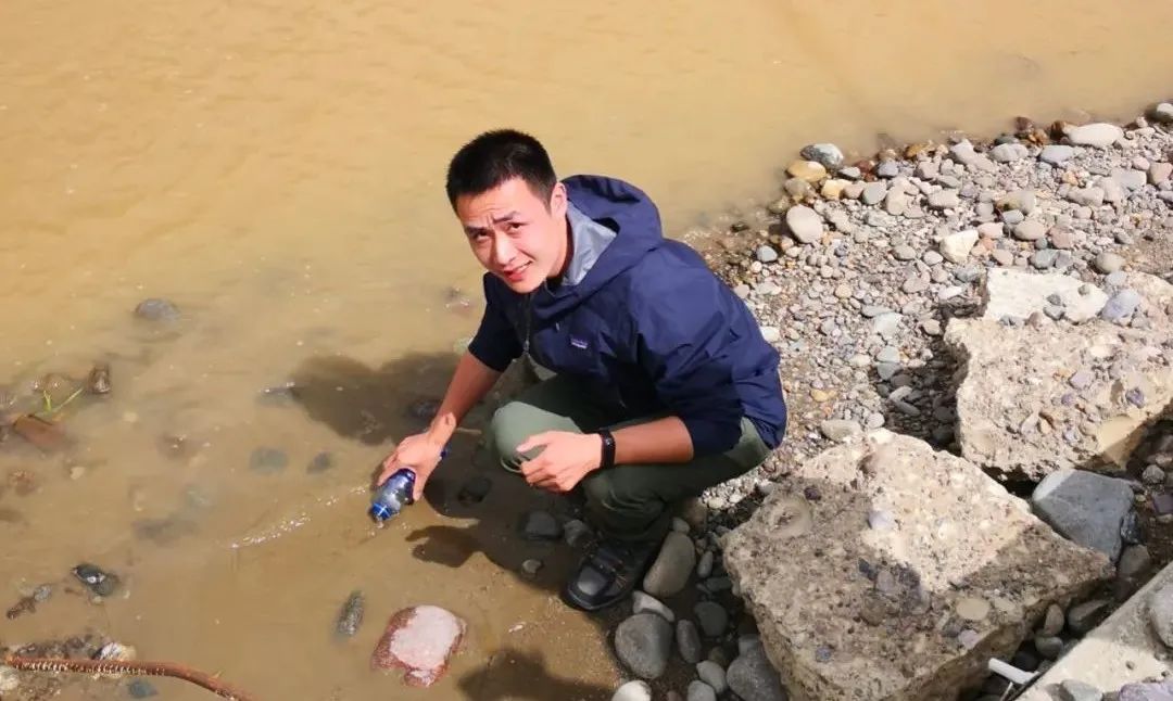 唐铭在西藏雅鲁藏布江支流采集河沙样品