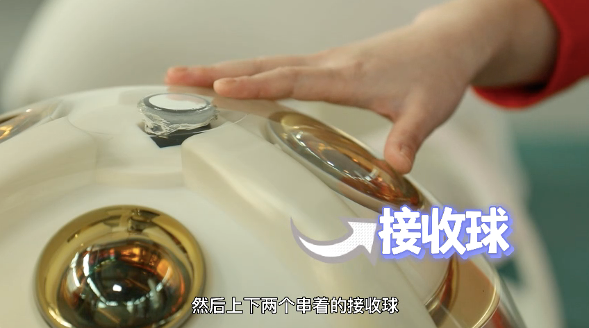 徐老师身边的三个大玻璃球,一个是发光球,两个是接收球,互相配合,默契满分~