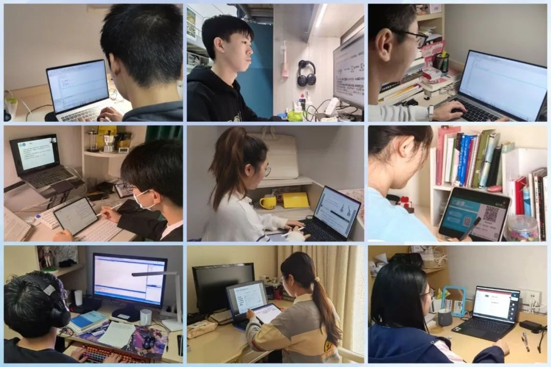 还有一些家在中高风险地区的同学和国际留学生未能返校,学校通过教学直播平台,开启了线上学习。