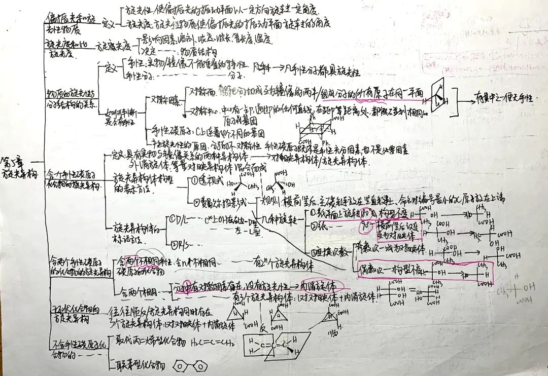 ▲姜卓攸制作的《有机化学》课程部分章节思维导图