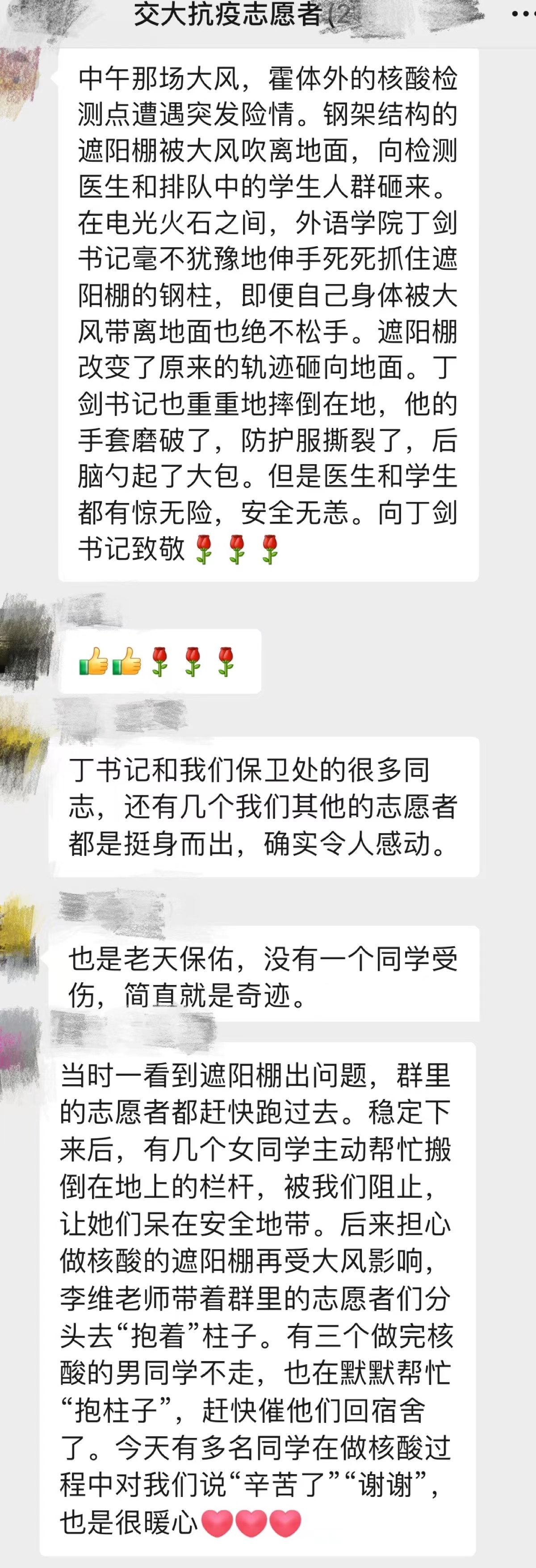 “读着读着,不知不觉泪流满面…… 是感动!是心疼!是团结!是爱的力量!老师们辛苦啦!大白们辛苦啦!一切都很交大!交大加油!”