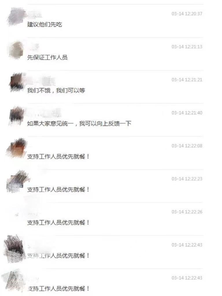 支持工作人员优先用餐