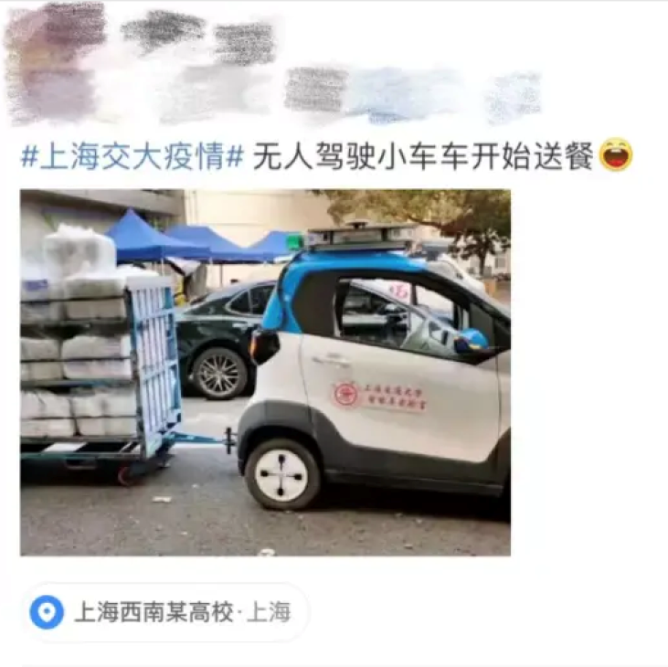 “昨天在家长群里看到老师们饿着肚子忙碌的用私家车给每一栋宿舍楼送餐。看得我和家人个个热泪盈眶。感恩老师,感恩交大!为了这两三万的学生,您们辛苦了!愿交大无恙,中国无恙!”