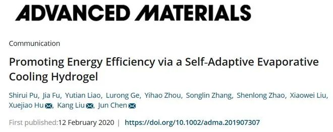 针对这一问题,武汉大学胡雪蛟教授、刘抗研究员带领团队设计开发一种被动式水凝胶薄膜散热技术,最新研究成果于国际顶尖期刊 Advanced Materials在线发表。