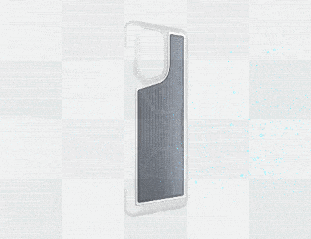 散热手机壳的外观并不笨重,看起来与普通手机壳并无二致。散热薄膜设置在手机壳内部,被一个导流硅胶垫包裹,触感柔软,且不会流动,触感上像是“一块人工皮肤”。