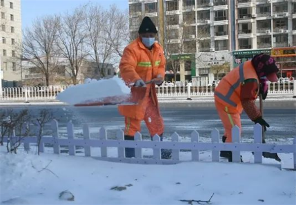 雪后环卫工人正在清扫积雪 供图 营口市委宣传部