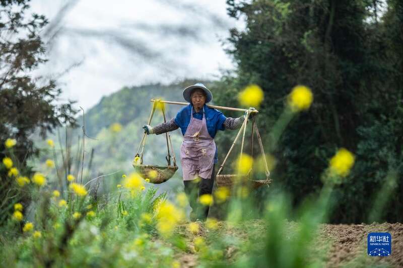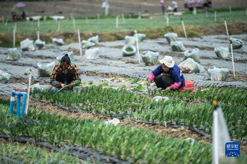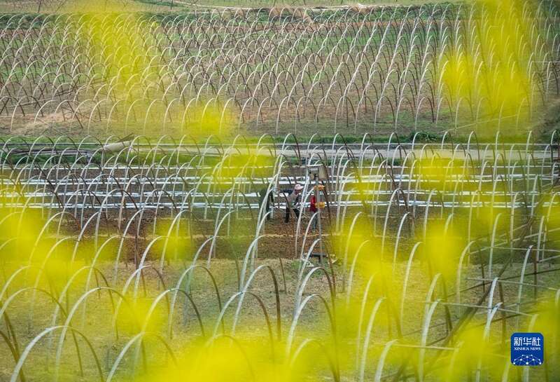 3月20日,贵州省长顺县广顺镇农户在田地里劳作。
