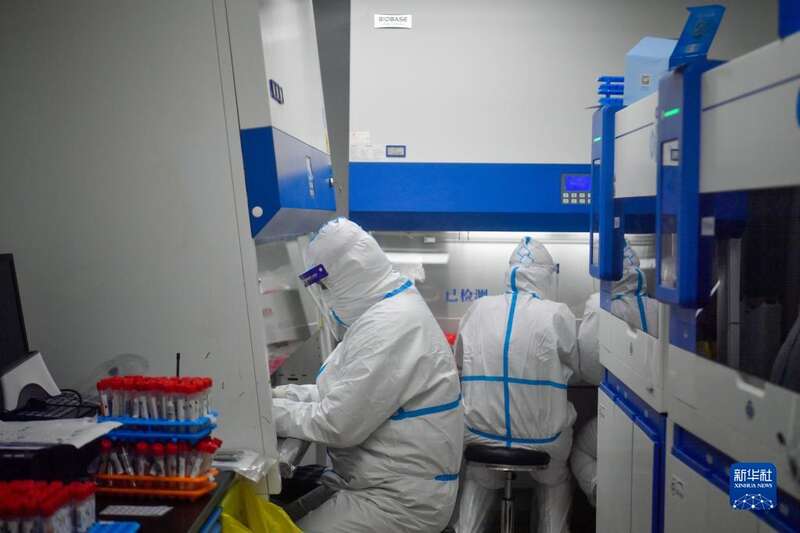 3月19日晚,位于天津市第一医院的天津市河北区城市核酸检测基地内灯火通明,工作人员紧张而有序地检测着当日该区三个街道的核酸采样样本及复检样本。