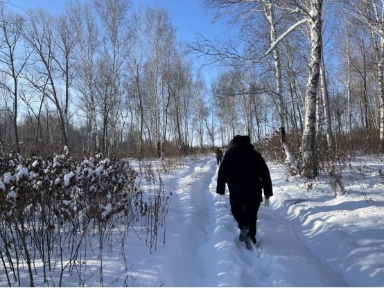 2021年12月,中央第一生态环境保护督察组在黑龙江省黑河市沾河林业局现场检查毁林种参情况。(督察组供图)