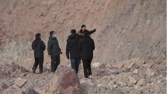 2021年12月,中央第四生态环境保护督察组在宁夏回族自治区中卫市中宁县铜铁沟陶瓷黏土矿现场检查越界开采问题。(督察组供图)