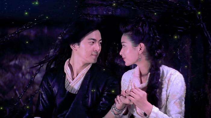 电影中,聂风和孔慈来到剑冢,看见漫天的萤火浪漫美丽,两人开心地对视,这时音乐响起,天真烂漫的童声对应着此时天真浪漫的二人。