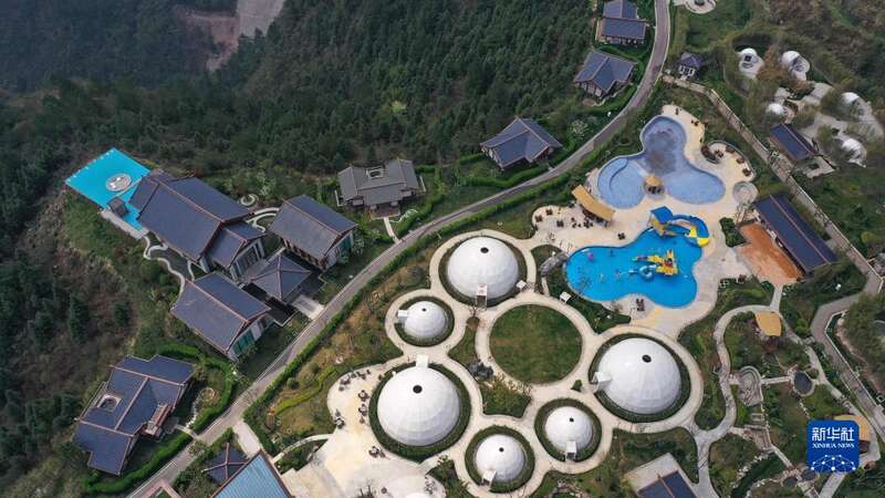 3月20日拍摄的贵州省龙里县云从朵花温泉度假区(无人机照片)。