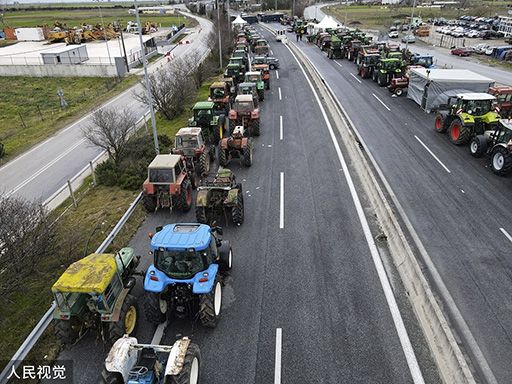 希腊农民开车聚集在道路上,抗议能源价格高涨。(资料图)