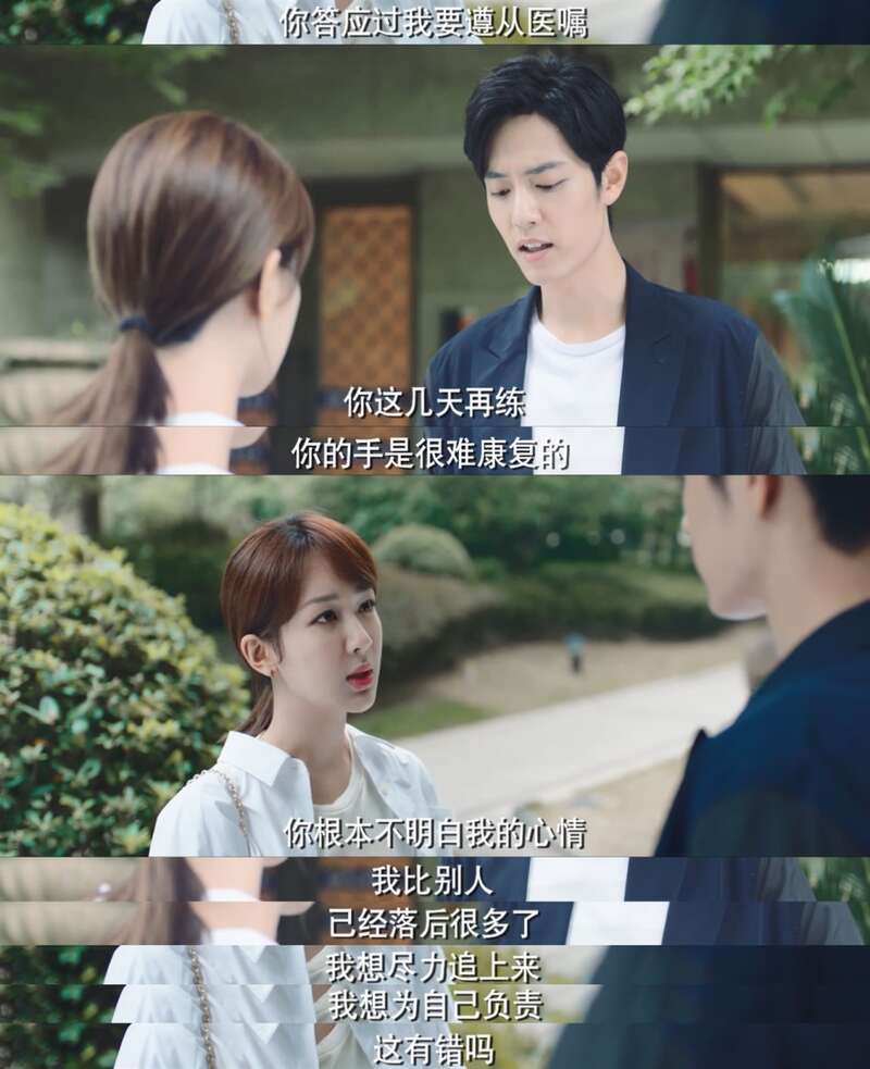 还以为她真有什么“优势”,原来是一堆喊口号、表决心的片汤话。而且,剧中林之校背着大提琴的时间,比她练习大提琴的戏份多得多,其余时间她主要用来跟顾魏互动增进感情了,哪里看到她争分夺秒练习或努力?怎么突然就得了腱鞘炎?