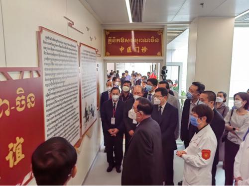 启用仪式结束后,洪森首相专门到考斯玛医院新设立的中医科进行了参观,对远道而来的12位援柬中医抗疫专家表示热烈欢迎和衷心感谢。他表示,中医在全球尤其是亚洲地区都有广泛应用,中药在柬抗击新冠肺炎疫情的过程中也发挥了重要作用。感谢中方对中医药技术的无私分享,希望中医能为柬医学发展带来帮助。