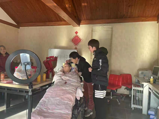 从潘姝霏尚在ICU开始,一直到母女二人来到托养中心,志愿者们是潘云妹生活中的亮色。“感恩”是她的朋友圈最常出现的关键词。“我的孩子们,”她这样称呼他们,“我的实诚闺女囡囡给姝霏宝贝定制了一个20人的生日蛋糕。”蛋糕一半挤满了草莓和蓝莓,一半写着“妹菲(霏),Happy Birthday”。