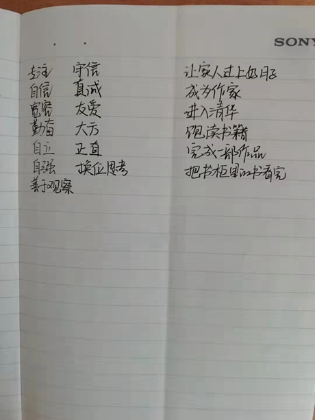 这份执着,曾经也流淌在女儿身上。19岁以前,潘姝霏写了大量日记。其中一本,她用紫色的水性笔写道:“要成功,必须有强烈的成功的欲望……成功来源于我要,我就能;我一定要,我就一定能。”
