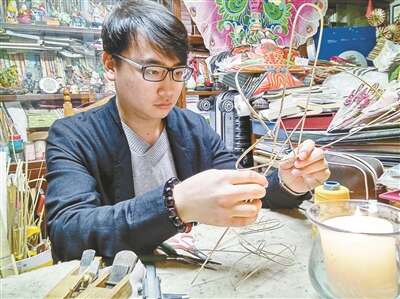 吕阳正在制作风筝