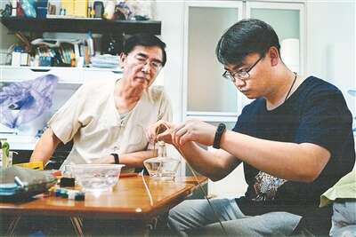 吕阳大学学的编程。吕铁智那时也支持他做自己喜欢的事,没逼着他非得回来学手艺。吕铁智自己干了四十多年,收了一个徒弟悉心教授,可惜徒弟刚能上手干活,便不幸生病去世。那次回家,吕阳触动很大,“我爸头发原来油亮油亮,可黑了,这一下头发白了好多,人也瘦了。我知道金马派没有六七年连门儿都入不了,先不说理念,光练画就需要时间。他干了四十多年才收的徒弟,我觉得老爷子都有点没心气了,挺心疼他的”。可是吕阳内心很挣扎,因为工作正赶上事业上升期,犹豫不定间,发小的一句话让吕阳下了决心,“他说你要是坚持干编程,最多你自己得意十年,要是不回来学这个,传承了一百多年的东西到你这就断了”。2014年,吕阳辞职回家学习技艺,年近六十的吕铁智高兴又意外,“没想到他直接就辞了职,然后我就想再归置出来一个人,金马派风筝到我这也不会断了,他也能传承下去”。