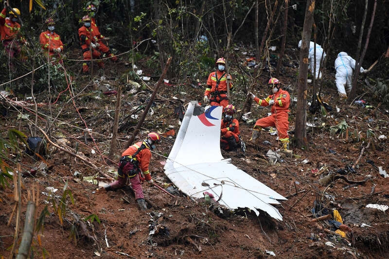 3月23日,在广西梧州藤县东航MU5735航班坠机事故现场核心区,武警广西总队官兵找到两部黑匣子其中一部。3月23日,民航事故调查中心宣布,当日16时许,在广西藤县埌南镇莫埌村坠机事故现场,搜救人员发现了MU5735航班的一部黑匣子。搜救人员在事故核心区继续搜寻失事飞机的另一个飞行数据记录仪(黑匣子)和相关残骸。新华社发(许东 摄)