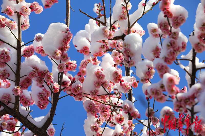 3月19日,雪后天晴,北京龙潭湖公园里的桃花映衬在蓝天下,格外美丽。中青报·中青网记者 李建泉/摄