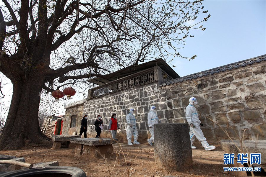 3月23日,河南省焦作市博爱县月山镇东凡厂村,医护人员上门为村民进行核酸检测采样。