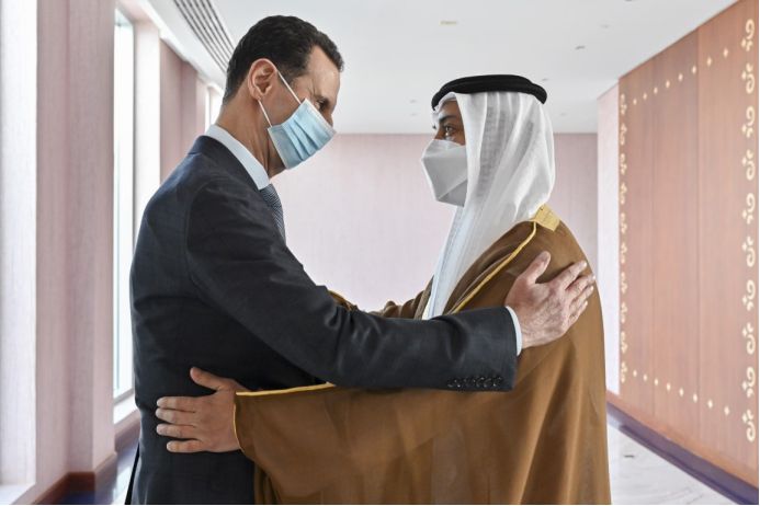 3月18日,叙利亚总统阿萨德访问阿联酋并与阿布扎比王储穆罕默德举行会谈。阿联酋通讯社(WAM)发布的一段视频显示,多年未在公开场合见面的阿萨德和穆罕默德一起站在叙利亚和阿联酋的国旗前,相谈甚欢。根据叙利亚总统府发表的声明,阿萨德此行还会见了阿联酋副总统兼总理、迪拜酋长阿勒马克图姆。