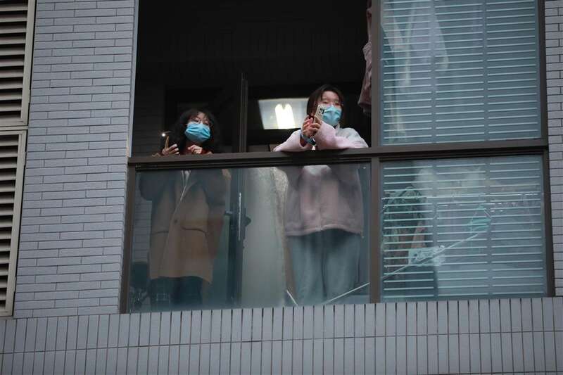 “阳台音乐会”现场,观众们在宿舍阳台上聆听