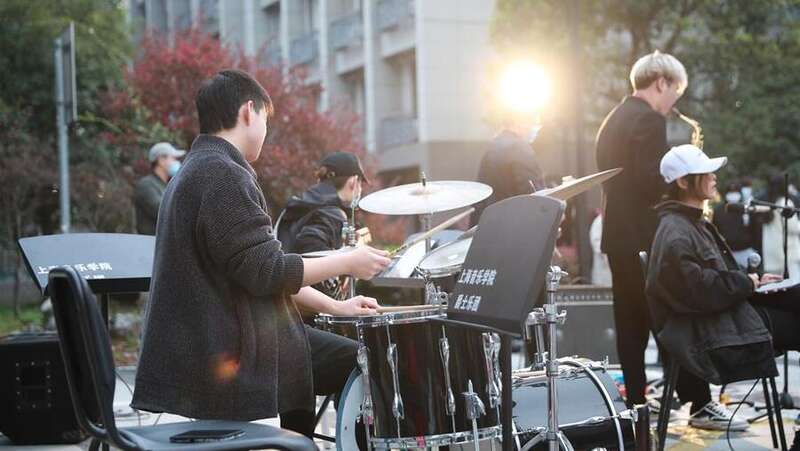 阳台音乐会的乐手们来自不同年级、不同专业。鼓手沈王昊今年19岁,是流行打击乐专业大一的学生。“虽然同处一个校园,但如果没有这次音乐会,我和乐队里的其他成员不会产生交集,很高兴能认识这些志同道合的人。如果我的同学们、龙华医院的患者们能在我们的音乐里感受到一点点力量,我们的目标就达成了。”