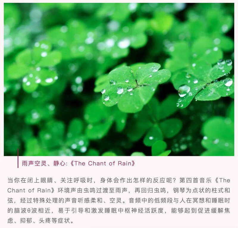 在团队微信公众号MusiCureSHCM上,每周都有不同主题的音乐疗愈作品。在“音乐冥想”主题下,可听见流水、虫鸣、雨声等环境音,缓解抑郁和焦虑的情绪。